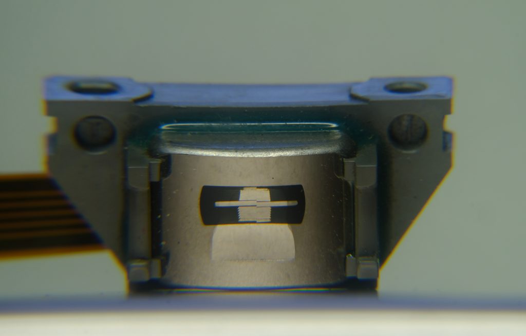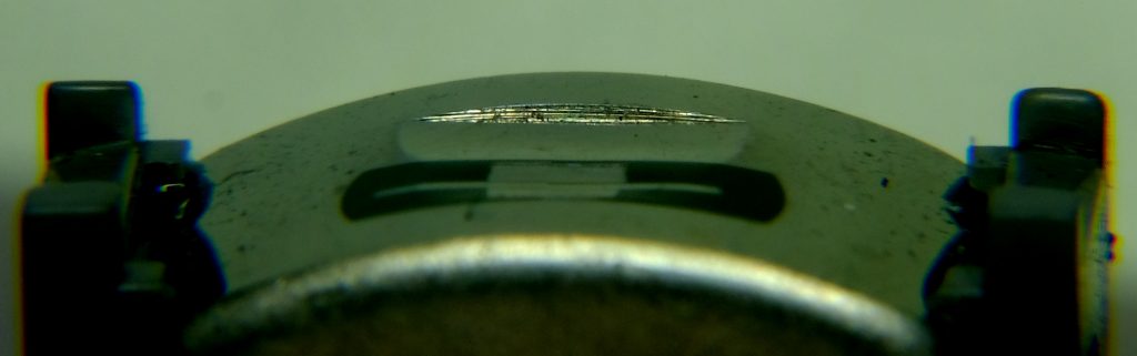 2. Here is another example. This is head from TC-D5M and it looks like new. But notice these small hollows, just on the place where gap is located. This head performs very bad. In one channel, heights are completely missing. I’ve seen tens of heads with this problem