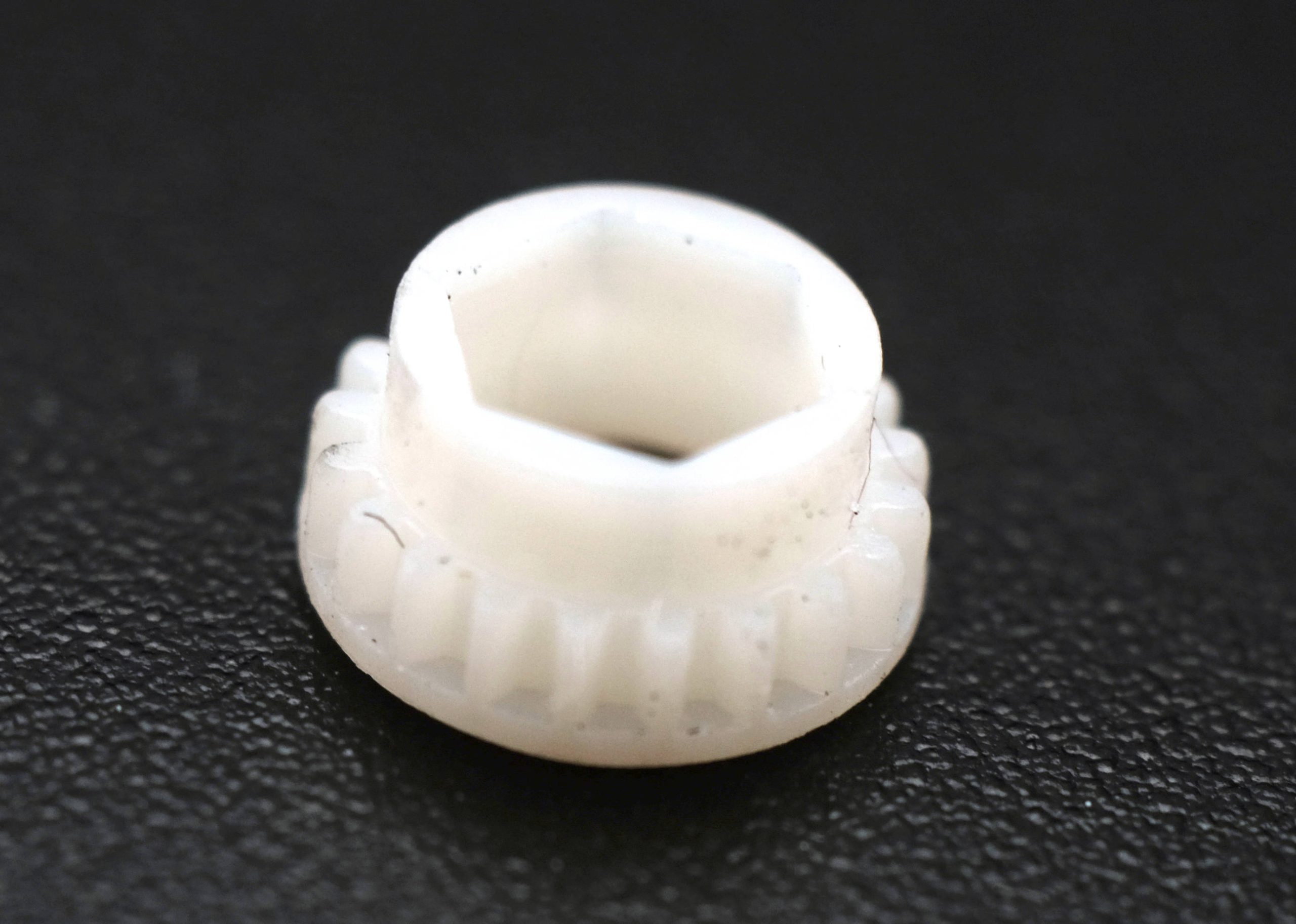 This spare part solves issue with worn take-up hex-shaped part. On the original part, the teeth are sometimes worn. The part is 3D printed on the printer with 0.01 mm accuracy. Material used is ABS-like resin. The surface is smooth and very accurate, almost indistinguishable from the original.